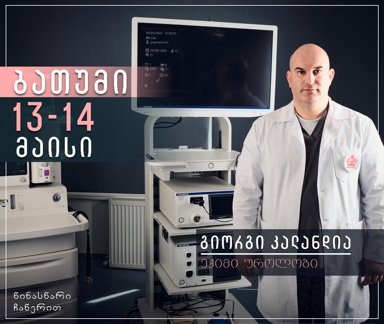 13-14 მაისს, ბათუმის დიაგნოსტიკური ცენტრი, ქარაზანაშვილის რობოტული ცენტრის უფროსი ექიმი-უროლოგი, გიორგი კალანდია ეწვევა