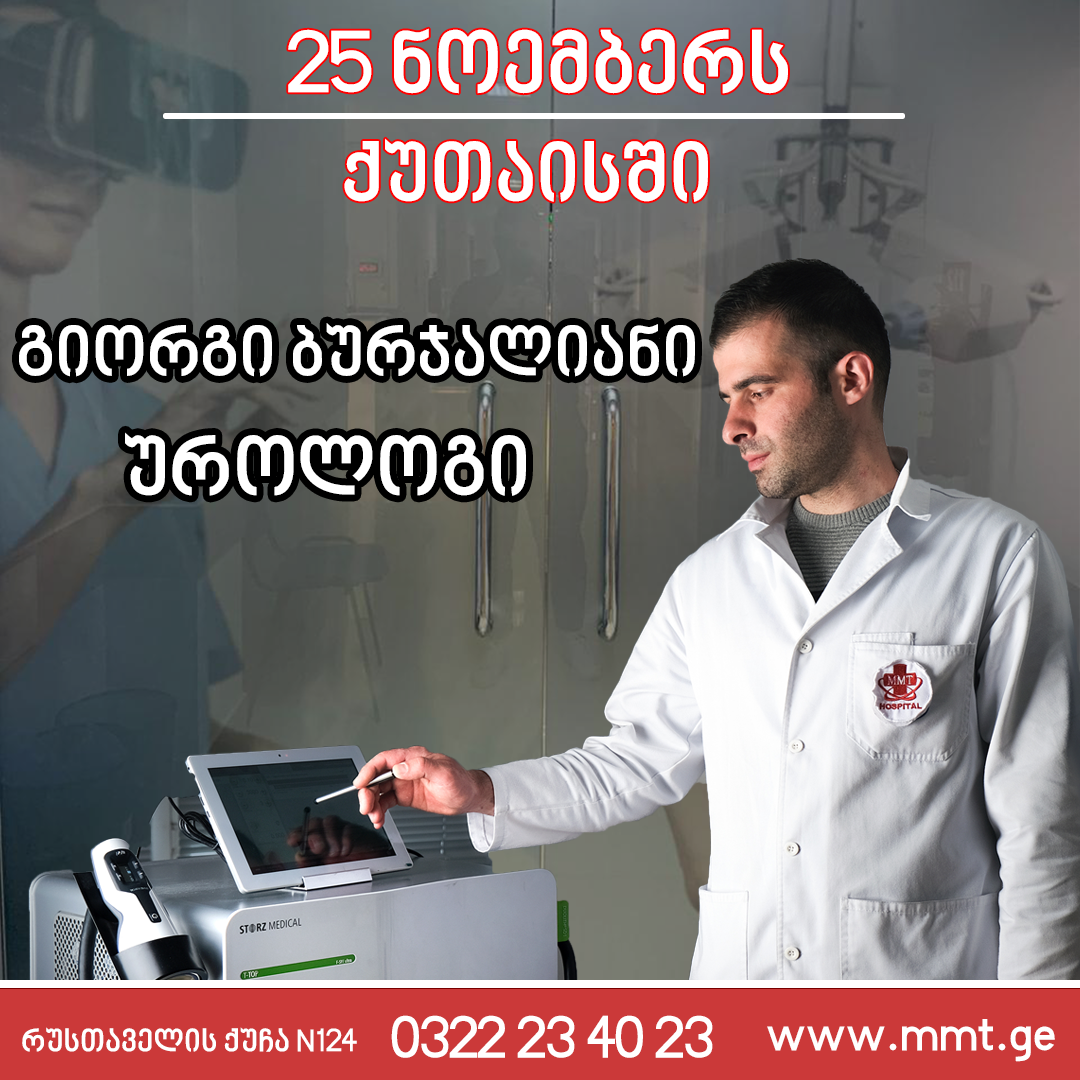 25 ნოემბერს ქუთაისის ქარაზანაშვილის რიბიტული ცენტრის მამაკაცთა ჯანმრთელობის და პროსტატის ცენტრის ხელმძღვანელი გიორგი ბურჯალიანი ეწვევა