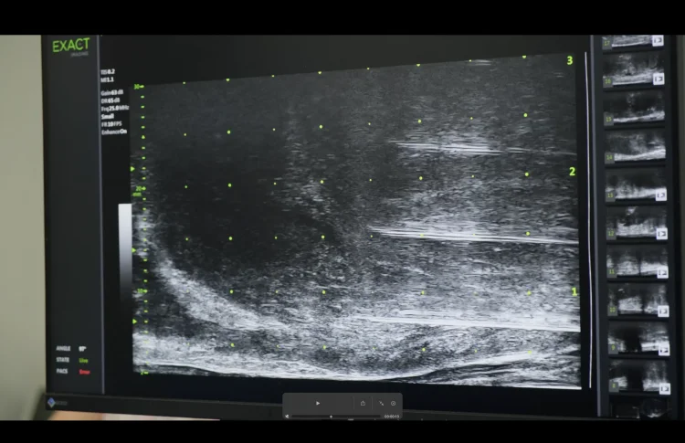 Its operation is based on high-frequency ultrasound, providing up to 300% improved imaging compared to conventional ultrasound. Thanks to real-time “live” visualization, identification of suspicious areas, and its application for targeted transperineal or transrectal biopsy, micro-ultrasound has no equal worldwide.