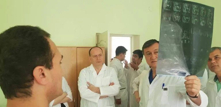 Во время визита в Узбекистан, состоявшегося в рамках программы посещения Роботического центра Каразанашвили в Грузии, профессор встретился с министром здравоохранения Республики Узбекистан — профессором Алишером Шадмановым.